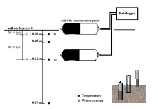 土壤呼吸是陸地生態(tài)系統(tǒng)的主要碳源,據(jù)報(bào)道,歐洲通量項(xiàng)目EUROFLUX 18個(gè)森林類型的平均年土壤呼吸占其總初級(jí)生產(chǎn)力的49%(Janssens et al., 2001),Law等(Law et al. 2001)研究發(fā)現(xiàn),土壤呼吸約占整個(gè)生態(tài)系統(tǒng)呼吸的四分之三。土壤碳庫(kù)細(xì)微的變化都將對(duì)大氣CO2濃度造成重大影響,因此研究土壤碳動(dòng)態(tài)及其CO2排放對(duì)于預(yù)測(cè)大氣CO2濃度變化成為迫切的重要課題。有關(guān)土壤表層CO2通量(土壤總呼吸)研究很多,但這顯然并不足以闡釋土壤CO2生產(chǎn)過(guò)程,土壤剖面CO2垂直梯度研究越來(lái)越成為土壤呼吸乃至生態(tài)系統(tǒng)碳循環(huán)研究的熱點(diǎn)。土壤不同層面(深度)CO2生產(chǎn)的持續(xù)監(jiān)測(cè)對(duì)于理解土壤CO2動(dòng)態(tài)極為重要,可以闡明由土壤到大氣CO2通量隨季節(jié)、光照、溫度、濕度及土壤特性的變化特征。另外,土壤垂直梯度CO2監(jiān)測(cè)可以與廣泛使用的渦度相關(guān)監(jiān)測(cè)比較,從而定量研究分析生態(tài)系統(tǒng)的碳交換。近幾年國(guó)外進(jìn)行了一系列創(chuàng)造性技術(shù)方法研究,SCG-3土壤剖面CO2梯度監(jiān)測(cè)系統(tǒng)即是根據(jù)上述研究而研發(fā)集成的原位CO2持續(xù)監(jiān)測(cè)系統(tǒng)。