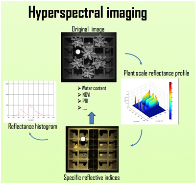 5.NIR近紅外成像單元(選配):可成像采集1450-1600nm水吸收波段,以反映植物水分狀況,在供水充沛情況下表現(xiàn)出高NIR吸收值,干旱脅迫情況下則表現(xiàn)出高NIR反射,NIR假彩色成像可以通過軟件反映和分析植物水分狀況