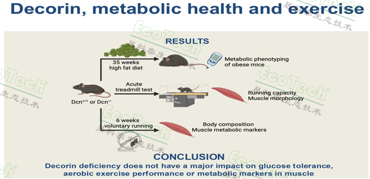 實(shí)驗(yàn)測(cè)試結(jié)果表明,缺乏decorin不影響該小鼠肥胖或葡萄糖耐受不良的發(fā)展,對(duì)骨骼肌纖維大小或與代謝、肌發(fā)生或ECM形成相關(guān)的基因的表達(dá)沒有重大影響。