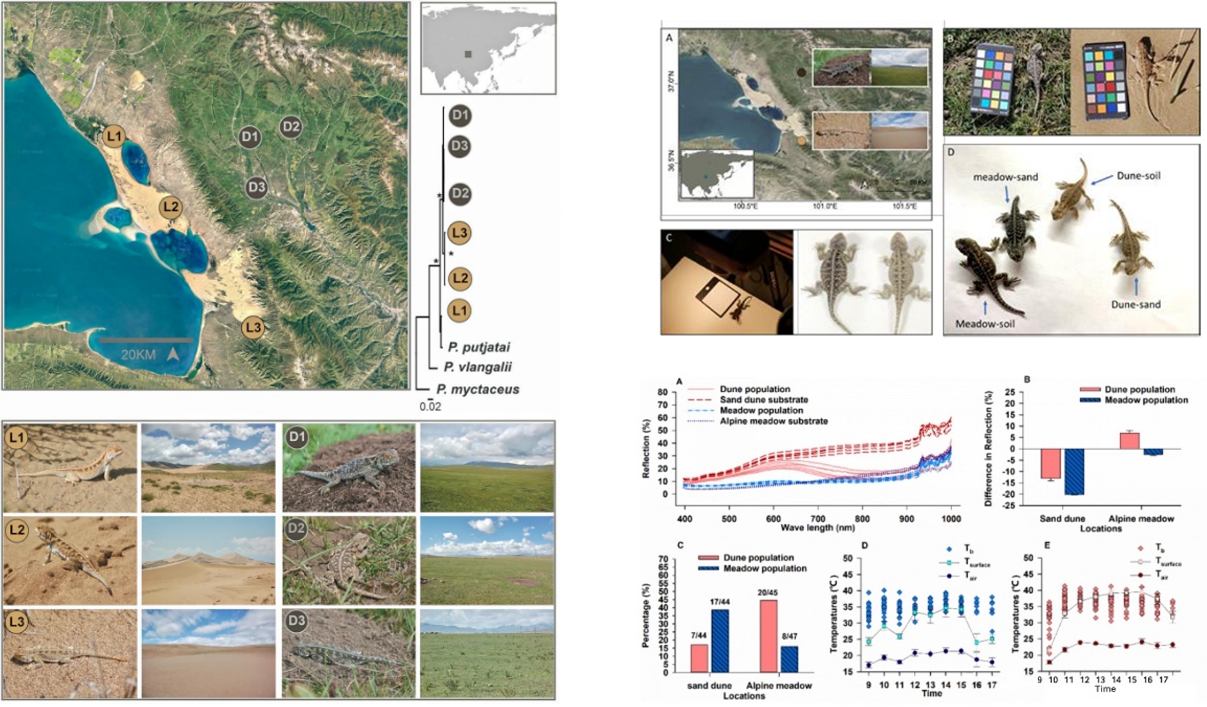 北京易科泰與中科院動物所合作,利用Specim IQ高光譜成像儀及ThermoRGB成像系統(tǒng),用于蜥蜴背部顏色分化對偽裝和體溫調節(jié)的影響研究,相關研究成果以Genetically encoded lizard color divergence for camouflage and thermoregulation為題發(fā)表在《Molecular Biology and Evolution》上。(2024)