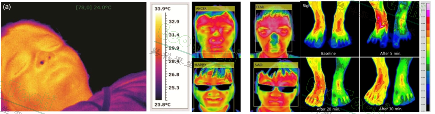 8)可選配紅外熱成像單元,用于成像測量體表及環(huán)境溫度分布情況等,以研究分析體表散熱溫度分布與環(huán)境溫度的關(guān)系等