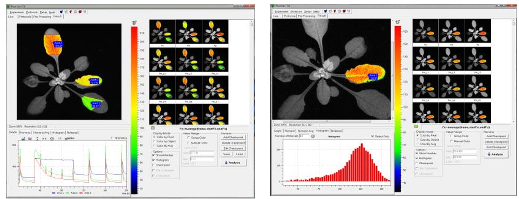 - FluorCam葉綠素?zé)晒獬上穹治鲕浖δ埽壕週ive(實況測試)、Protocols(實驗程序選擇定制)、Pre–processing(成像預(yù)處理)、Result(成像分析結(jié)果)等功能菜單