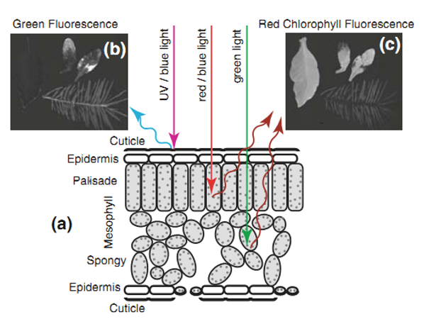 2. 不同顏色凌霄葉片的葉綠素熒光與紫外激發(fā)多光譜熒光成像分析(易科泰EcoTech®實驗室)