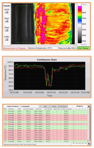ThermoInspector 系統(tǒng)包含一個中央處理單元,同時可支持多達 4 臺熱像儀。 所有熱像儀均采用高靈敏度(優(yōu)于 0.03℃)紅外熱傳感器,溫度測量范圍可達﹢2000℃。正由于這些非凡的特性,它可以連續(xù)測量和評估被測產(chǎn)品表面的熱場,無論是塑料、金屬還是生物材料。因此,本系統(tǒng)可以檢查熱特性,例如熱梯度,最高或最低溫度,以及評估溫度沿熱斷面的分散情況,檢查所選區(qū)域中溫度上升的速度。