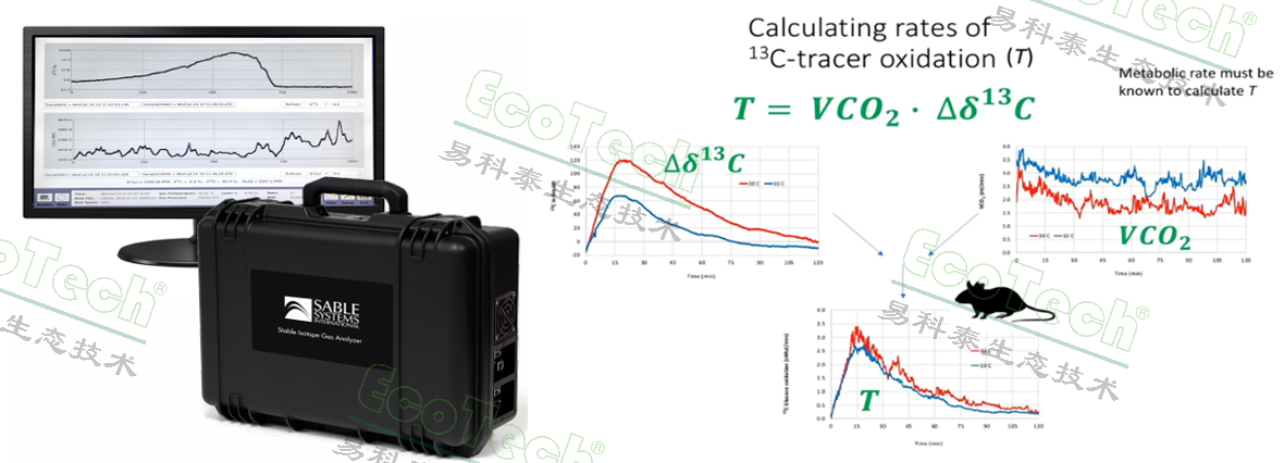 通過(guò)代謝示蹤劑(如碳-13標(biāo)記物,就像給生物分子裝上了精確GPS定位器)跟蹤,以及呼吸穩(wěn)定同位素分析儀實(shí)時(shí)監(jiān)測(cè)動(dòng)物呼出氣體中的13CO2來(lái)區(qū)分量化動(dòng)物能量代謝中消耗的哪些能量物質(zhì)等,可以更深入的研究代謝生理學(xué)機(jī)制(如代謝靈活性)等,而這種定量測(cè)量特定能量物質(zhì)氧化速率往往也需要知道VCO2。