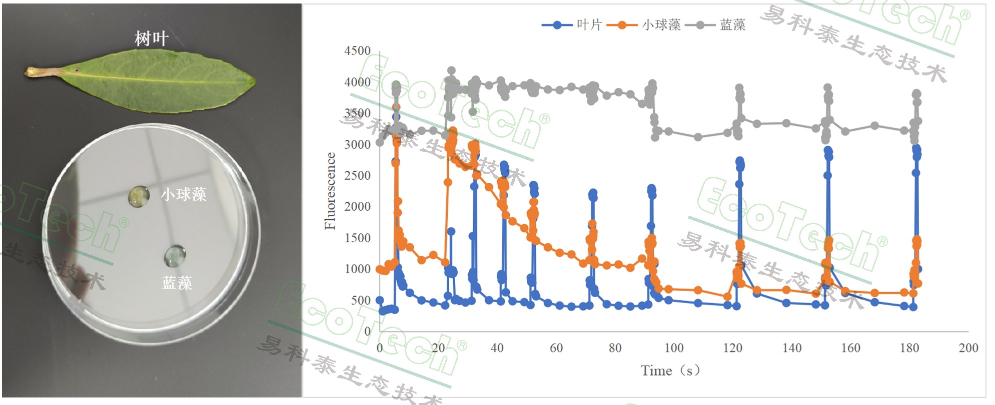 左:RGB圖;右:葉綠素?zé)晒鈩?dòng)力學(xué)曲線